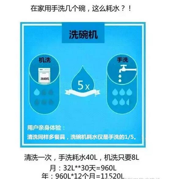 使用自動洗碗機至少可比手洗(熱水)節(jié)省近一半的電。