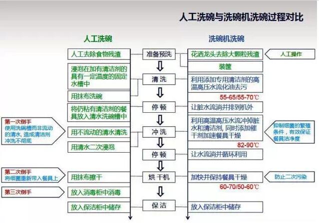 洗碗機特有的洗滌方式和洗滌環境,洗碗機具備良好的物理除菌功能,破壞細菌的滋生與生存條件,達到消毒功能。洗碗機用洗滌劑本身對各種細菌也有良好的抑制作用。商用洗碗機是餐廳、飯堂、酒店、餐具消毒中心等場所洗碗的最理想選擇。