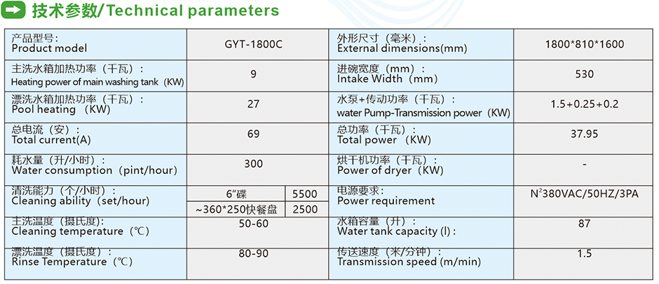 • 單缸兩道漂洗通道式洗碗機GYT-1800C