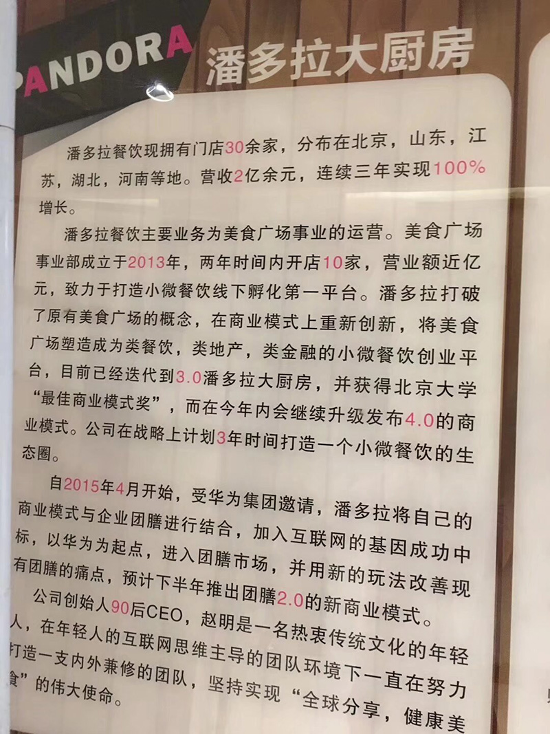 同時,潘多拉專注團餐行業的消費升級及創新服務,輸出運營管理,設計規劃管理,產品創新孵化及團餐信息化系統管理,推動團餐業建立數字化經營標準。打破傳統食堂服務邊界,成為北上廣深杭全覆蓋的團餐界創新“黑馬”。